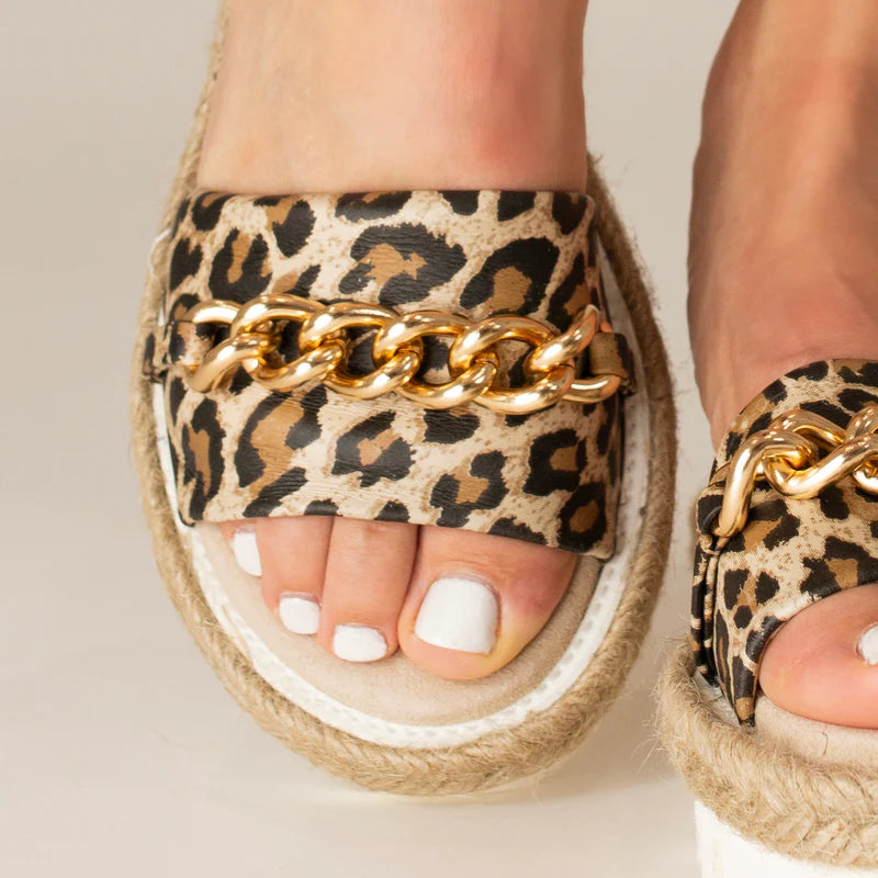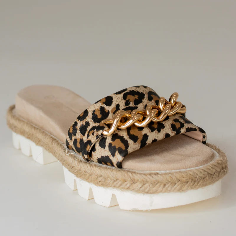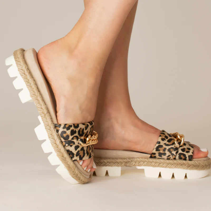 The Bardot summer sandal will be your everyday choice for every occasion. It features a exquisite fabric upper with a delicate gold chain . The white lite lug bottom is wrapped with natural jute trim resting on a elevated footbed wedge. The luxurious design is further enhanced by the soft kid sued wrapped foot. Whether running errands , attending casual gatherings, or simply enjoying a leisurely day out, the Bardot provides the perfect blend of style and comfort.