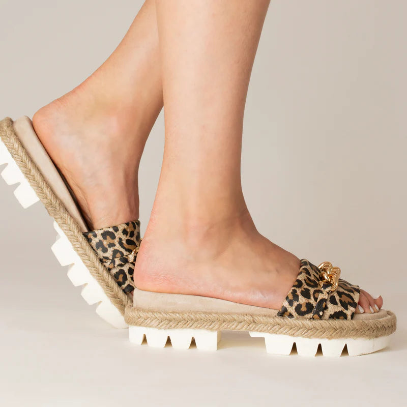 Cynthia Richard Bardot Leopard Print Leather Sandal