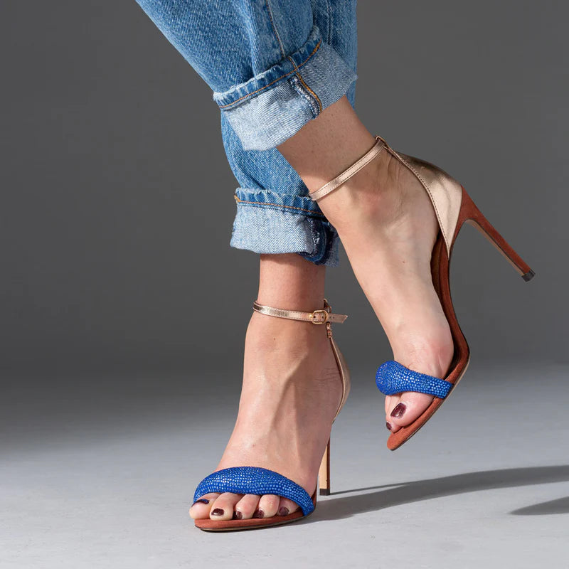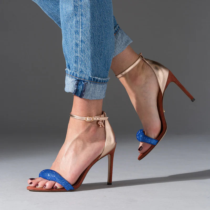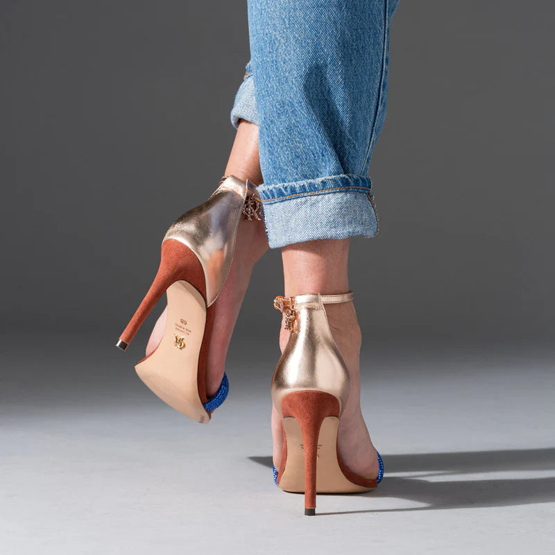 Mixing materials and pops of color are an intrinsic part of Cynthia Richard design. These crystal embellished and metallic leather heels are a statement themselves that enhance any outfit. Wear dresses to sparkle all night or throw on your favorite pair of T-shirt and jeans. The Breen is a daily vibe.