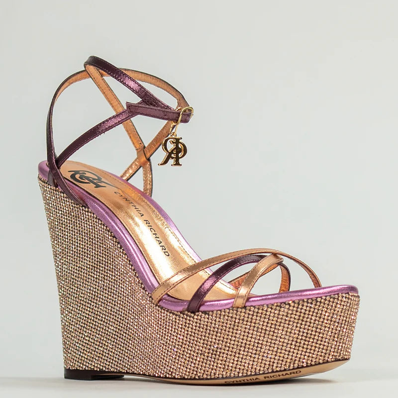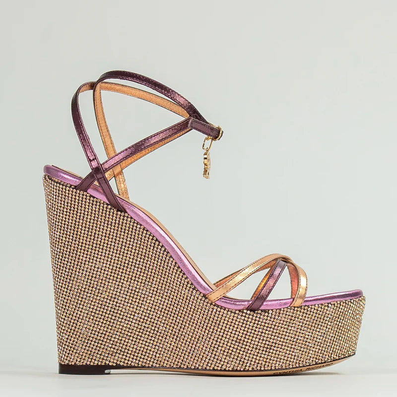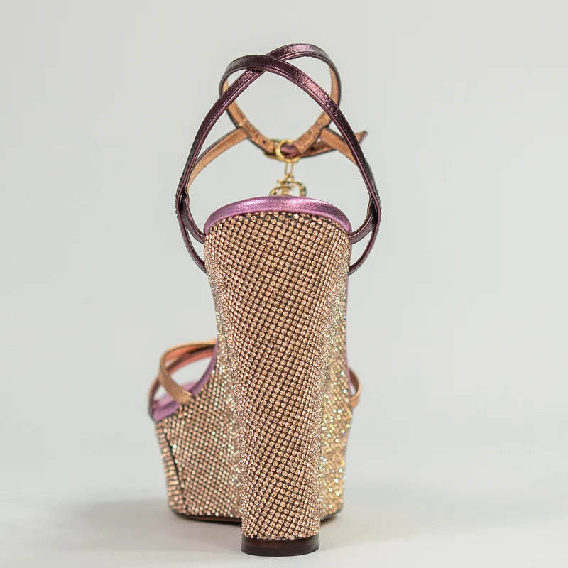 Our Farrah crystal-covered wedge sandals are as iconic as their name sake. They are beauty and they are glamour. The best part about these glittery wedge heels are how decadent they make even the simplest outfit. Like the Goddess herself, these wedges effortlessly shine. We love them sparkling under flair jeans and all dressed up for an evening soiree. We can't wait to see you shine in these.