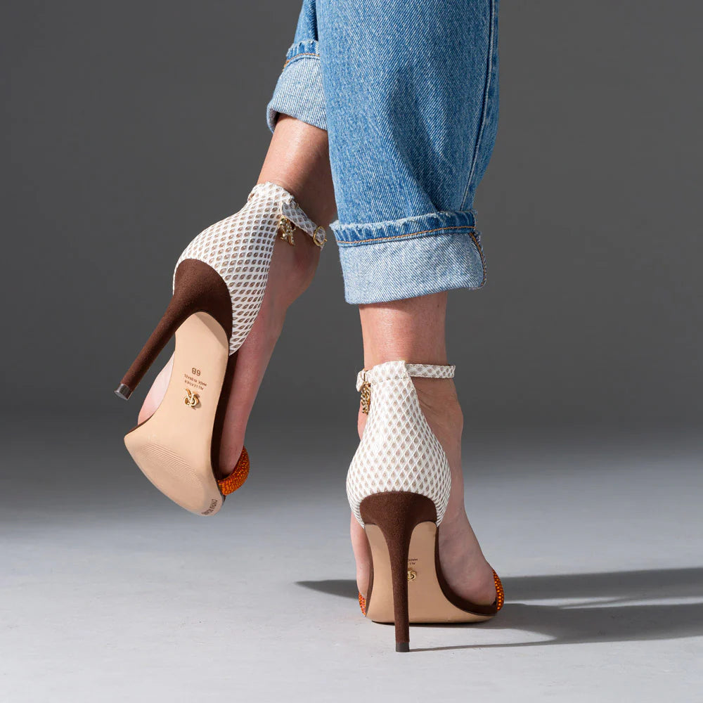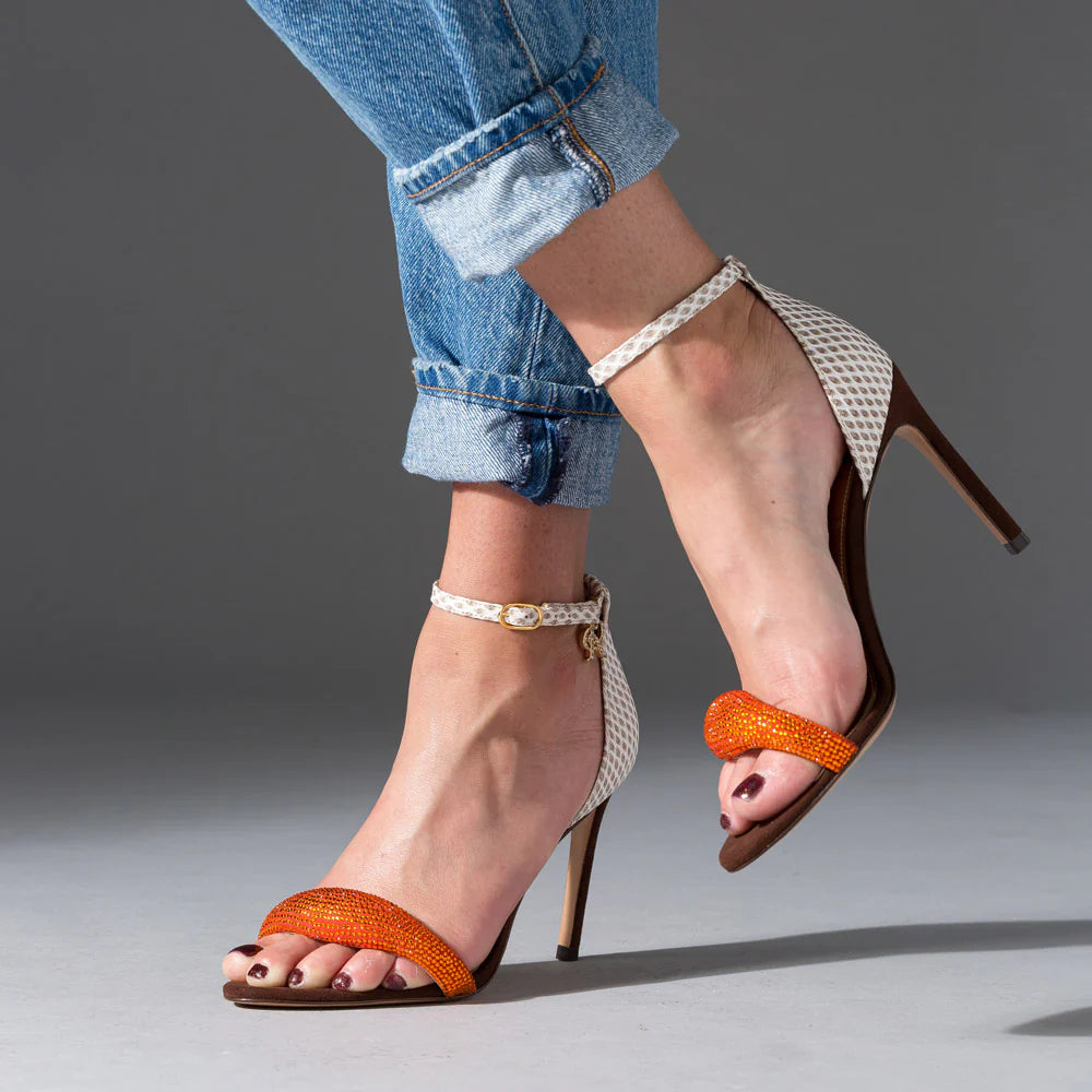 Mixing materials and pops of color are an intrinsic part of Cynthia Richard design. These crystal embellished and metallic leather heels are a statement themselves that enhance any outfit. Wear dresses to sparkle all night or throw on your favorite pair of T-shirt and jeans. The Breen is a daily vibe.