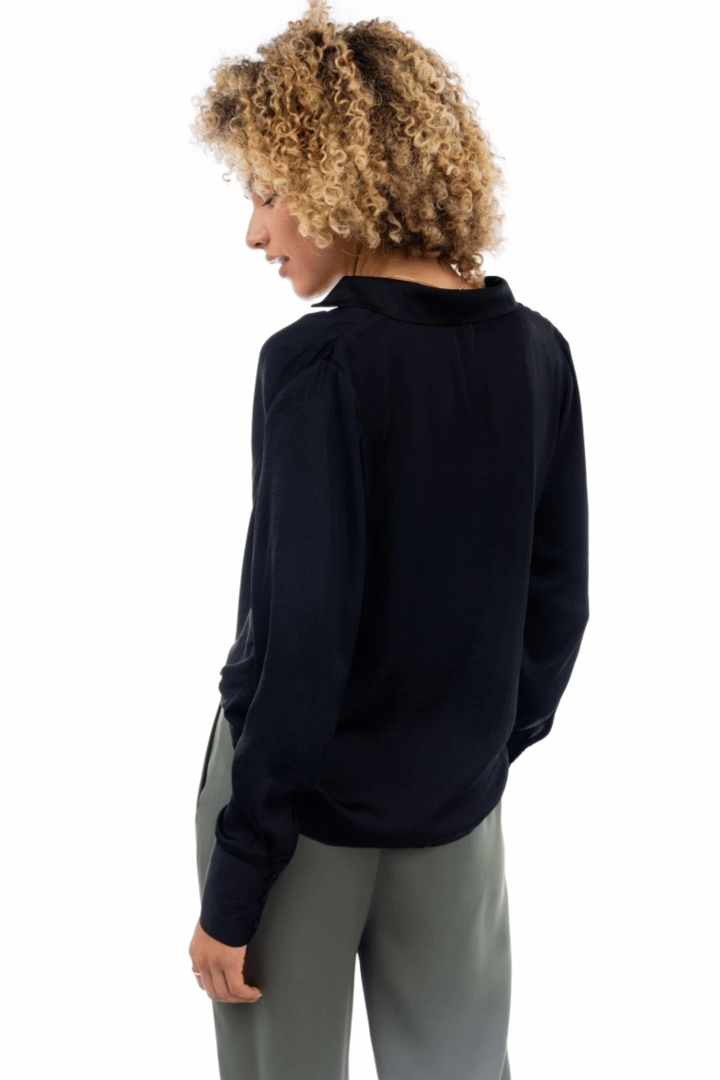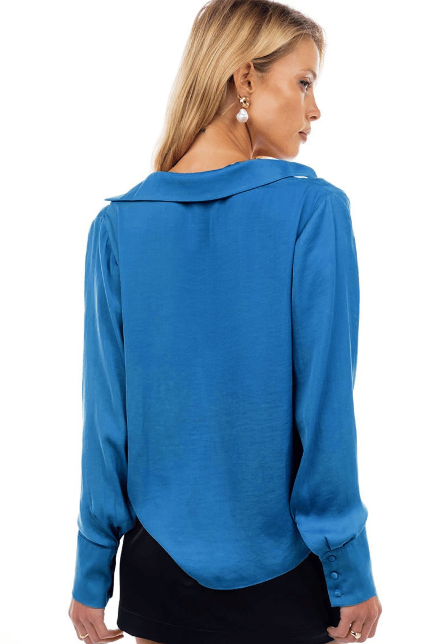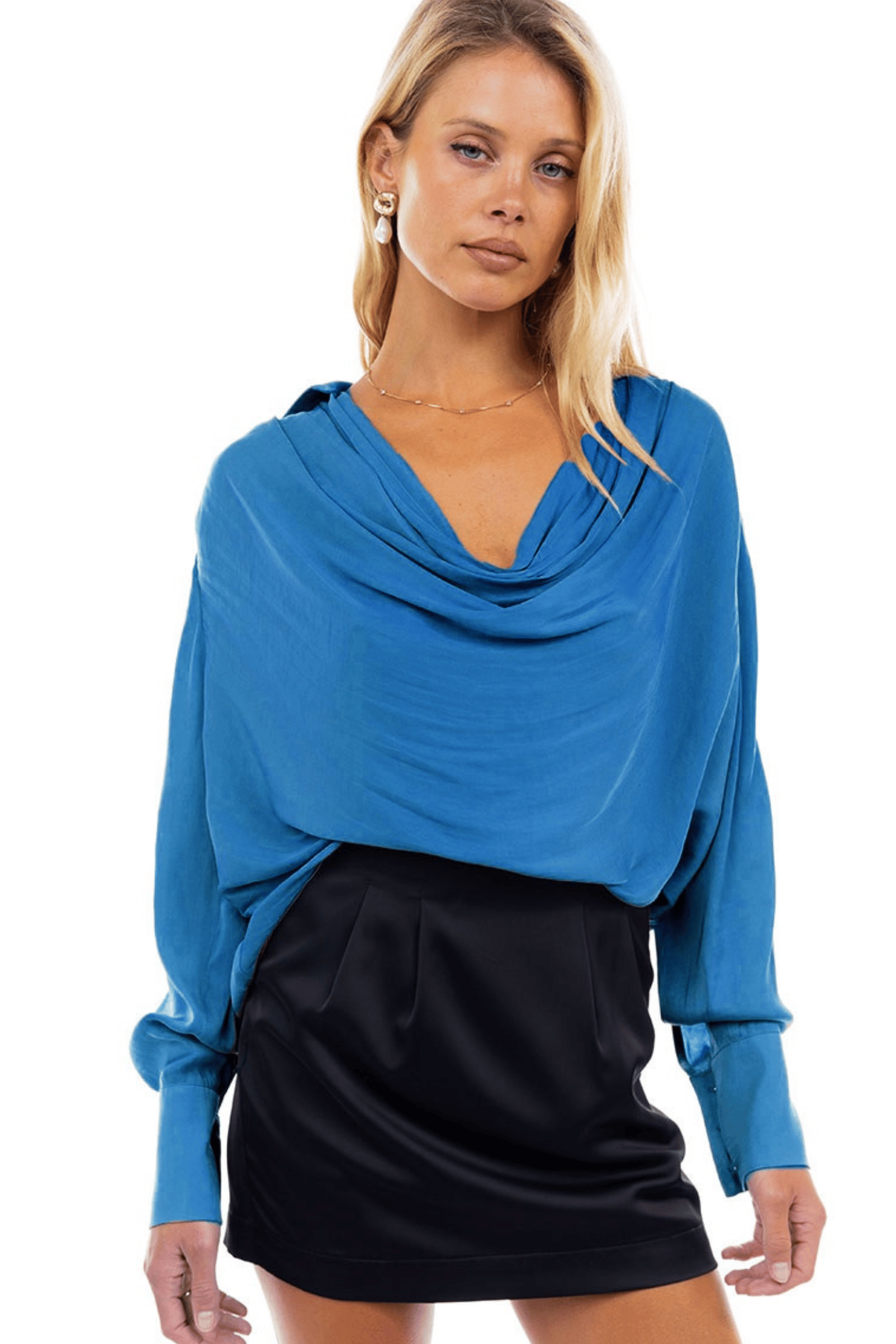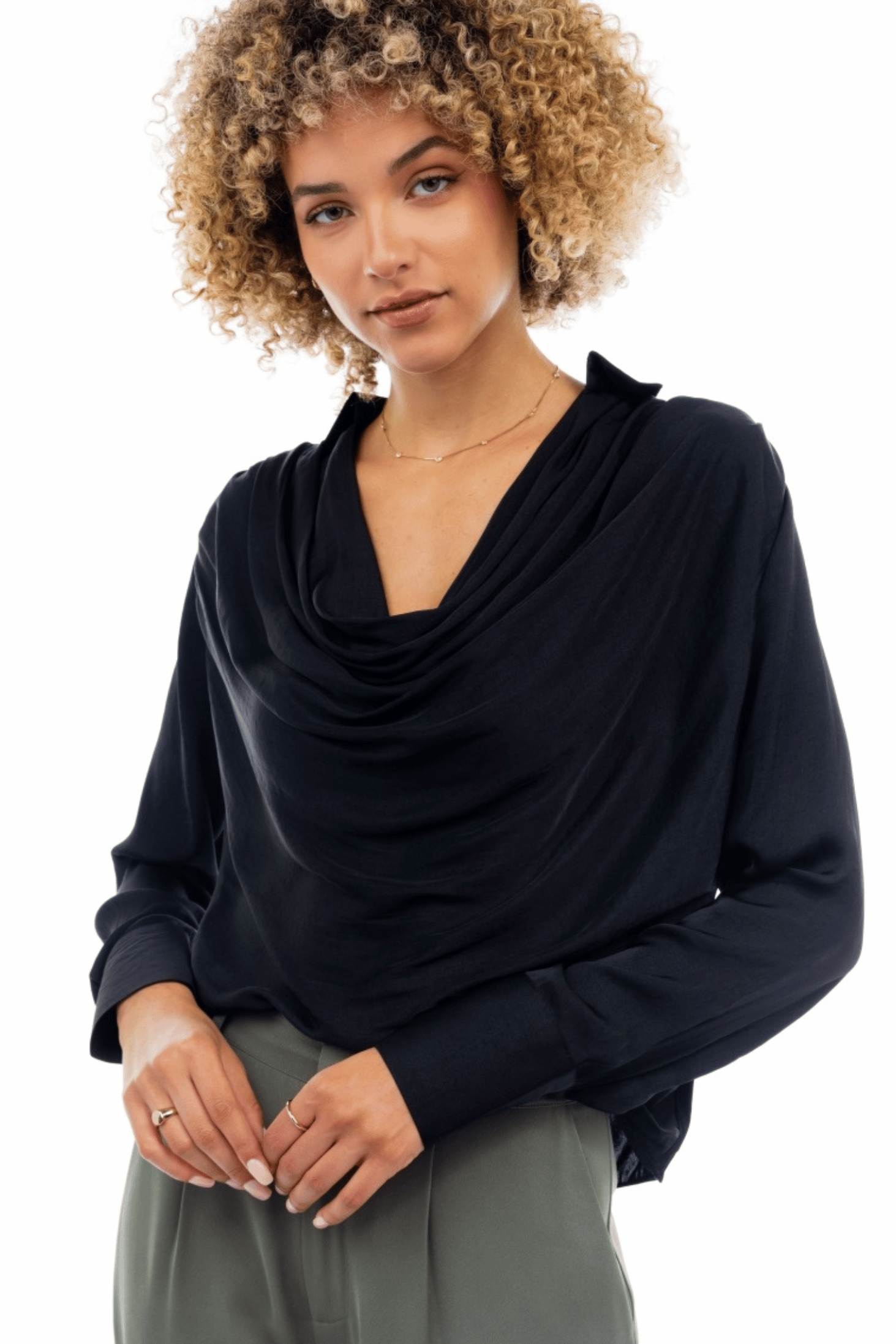 Draped Cowl Neck Blouse with Buttoned Cuffs