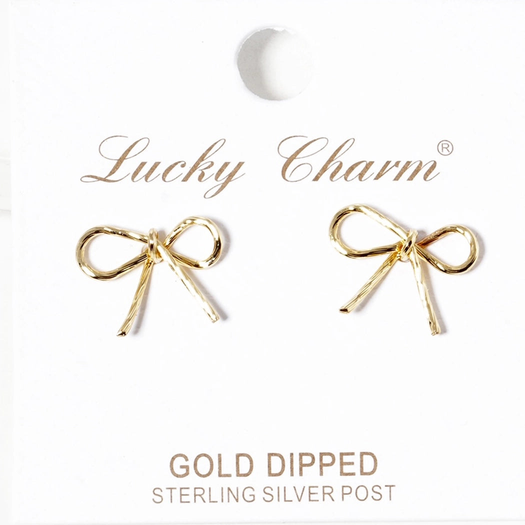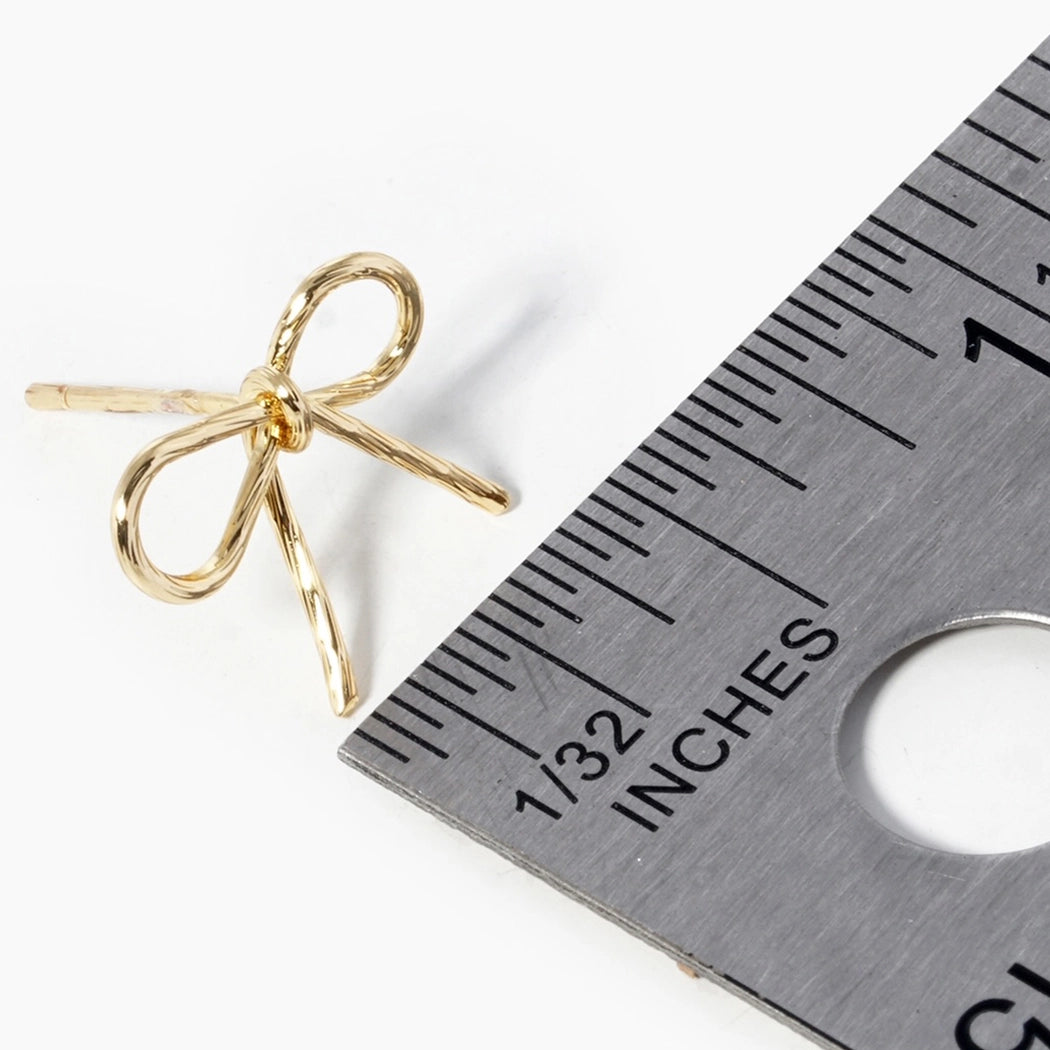 Metal Wire Bow Stud Earrings -Gold dipped -Post back. -Sterling silver post. -Lead and Nickel Compliant * Size: 0.7" X 0.8"