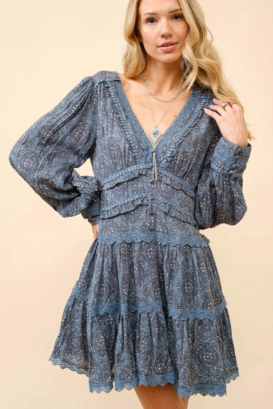 Get ready to twirl and dance the night away in our Rayon Jacquard Lace Tiered Mini Dress. Made from soft and luxurious rayon, this dress features unique jacquard lace and a tiered design that adds movement and flair. Perfect for any occasion, this dress will make you stand out and feel like a true fashionista!