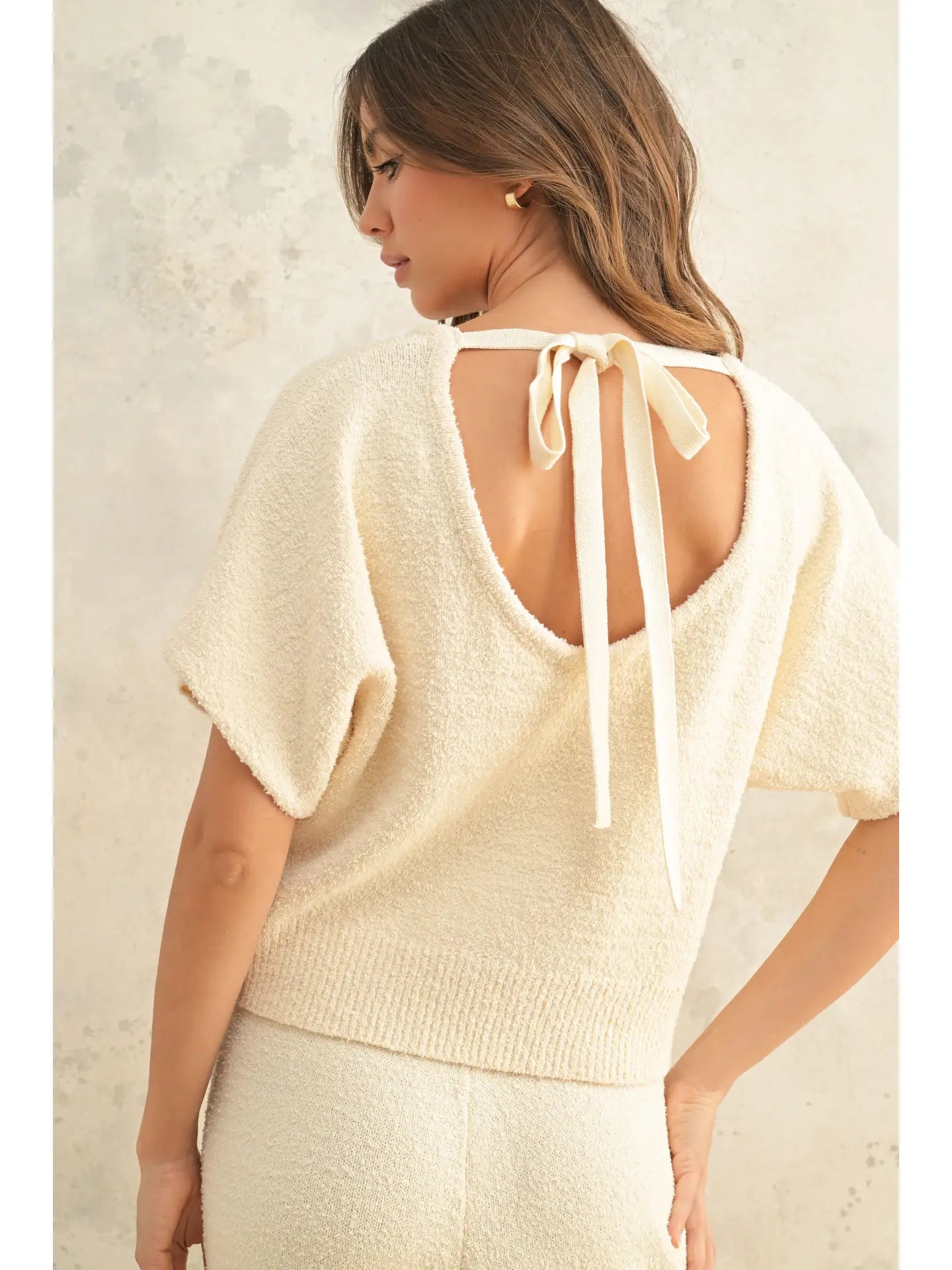 Add a flirty twist to your wardrobe with the Tie in the Back Knitted Top. Its soft knit fabric feels cozy while the playful back tie detail adds a fun, unexpected flair. Perfect for layering or wearing solo, this top brings a charming vibe to any outfit with comfort you’ll want all day long.