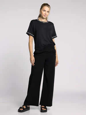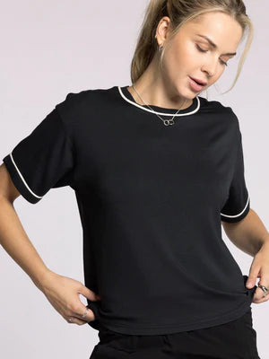 The Anne Tee brings a playful twist to your everyday wardrobe! This stylish black tee features eye-catching white stripes on the sleeves for that perfect pop of contrast. Comfortable enough for casual outings yet distinctive enough to turn heads, it's the versatile piece your closet has been missing. Mix and match with your favorite bottoms for an effortlessly cool look!