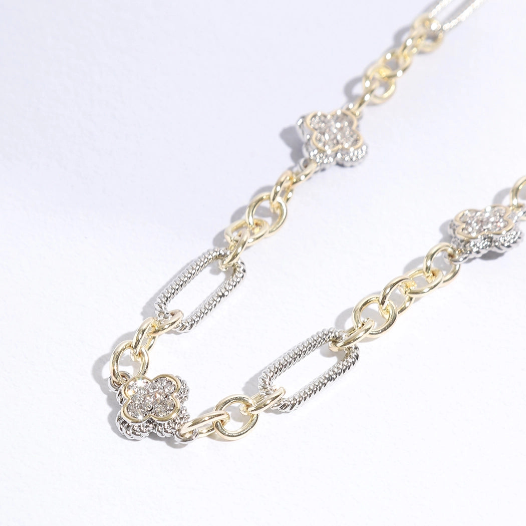 Get lucky with this Cz Clover Pendant Multi-Toned Link Necklace! The intricate clover design is studded with dazzling cubic zirconia, making it the perfect accessory for any outfit. With its multi-toned links, this necklace adds a touch of whimsy to any look.