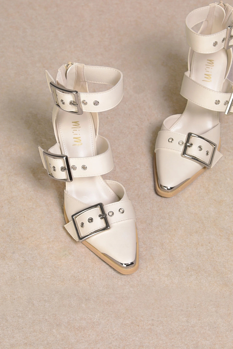 Hendrix Triple Belt Strap Pointed Toe Block Heels