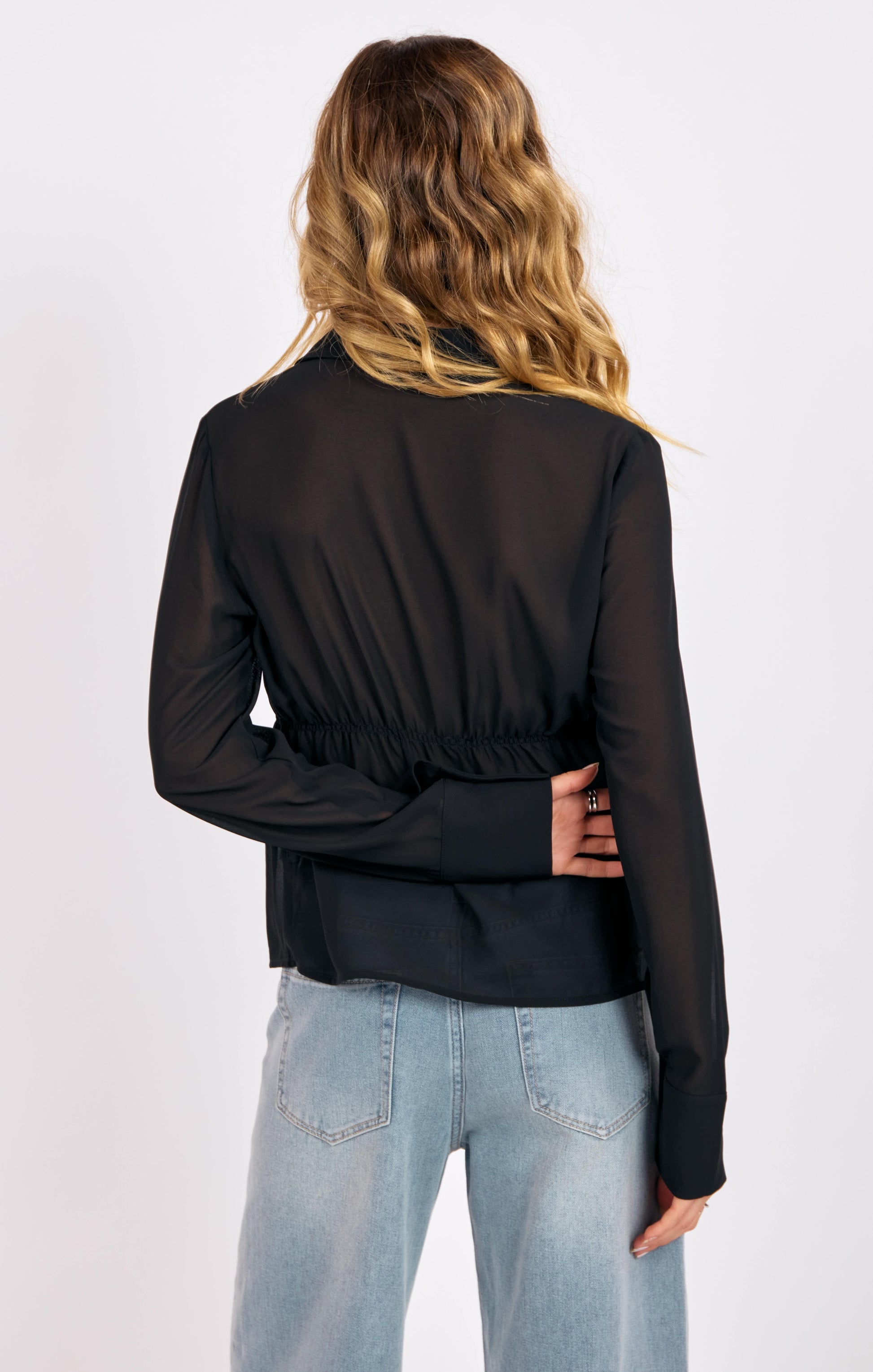 Sheer Ruffle Tuxedo Blouse